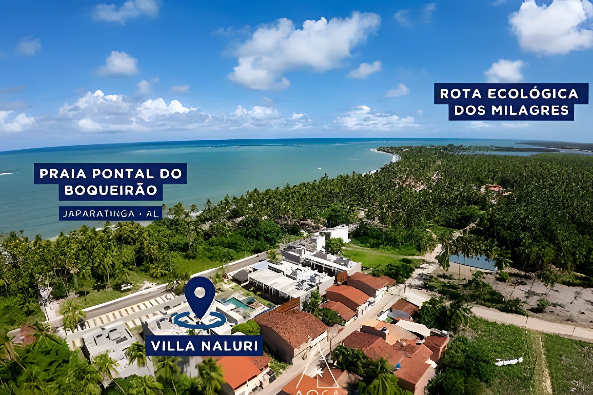 1. Maceió Airport (Zumbi dos Palmares): Approximately 130 km to Vila Naluri, which takes approximately 1h40 to 2h by car via AL-101 Norte.