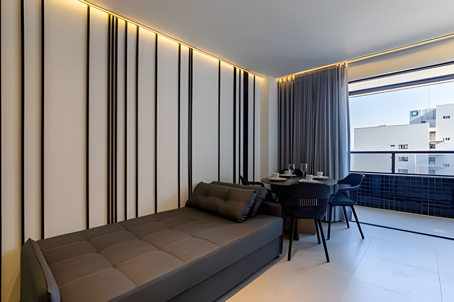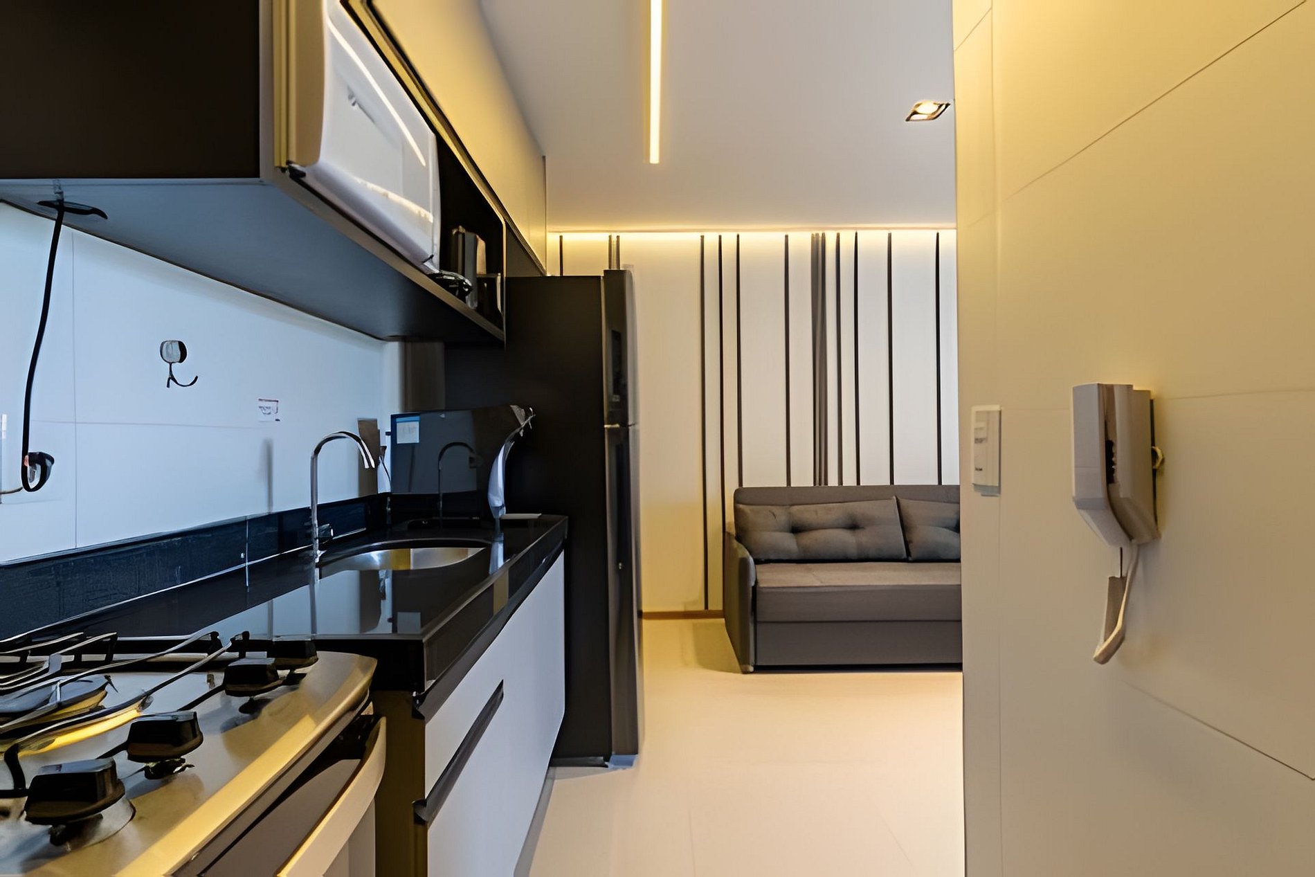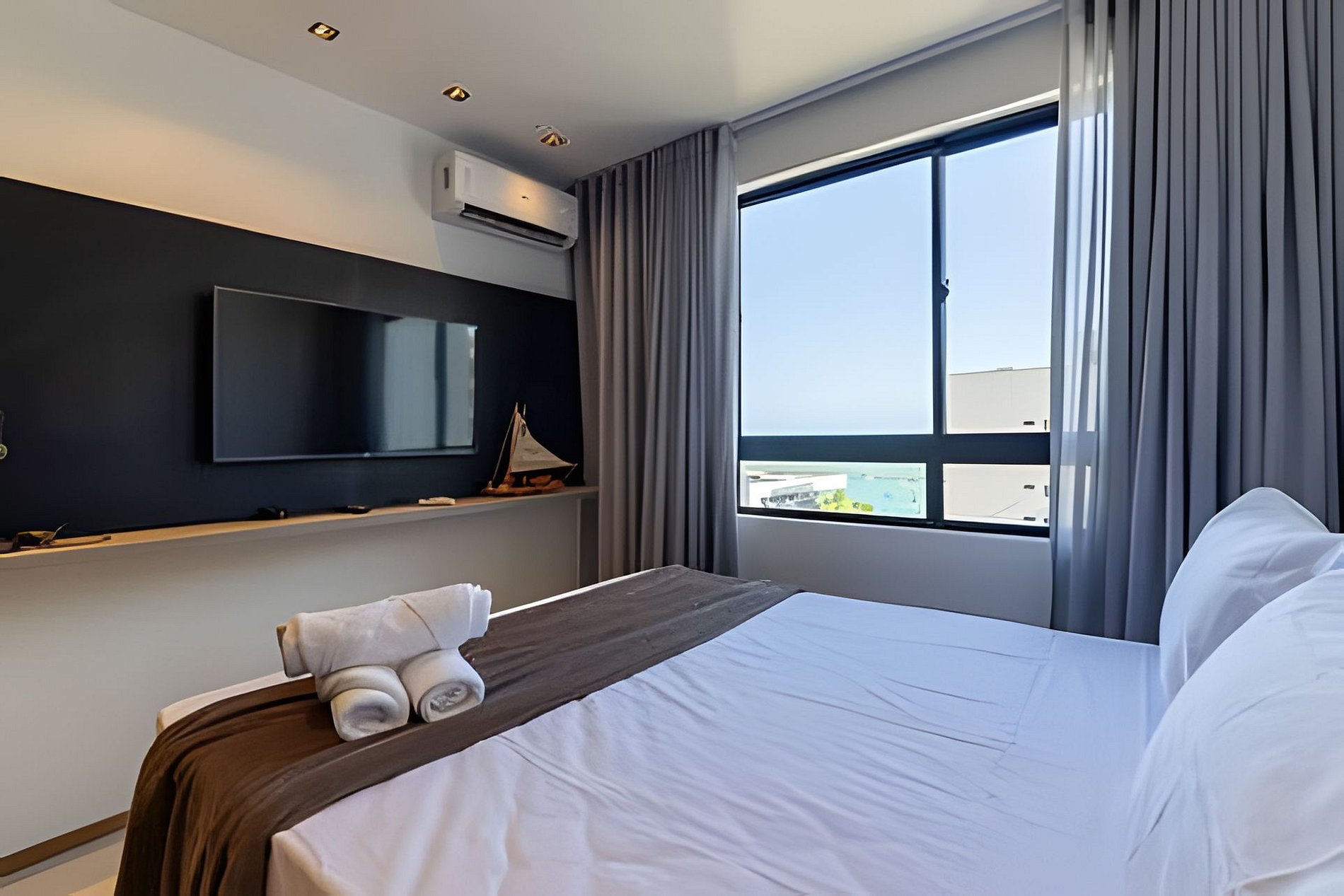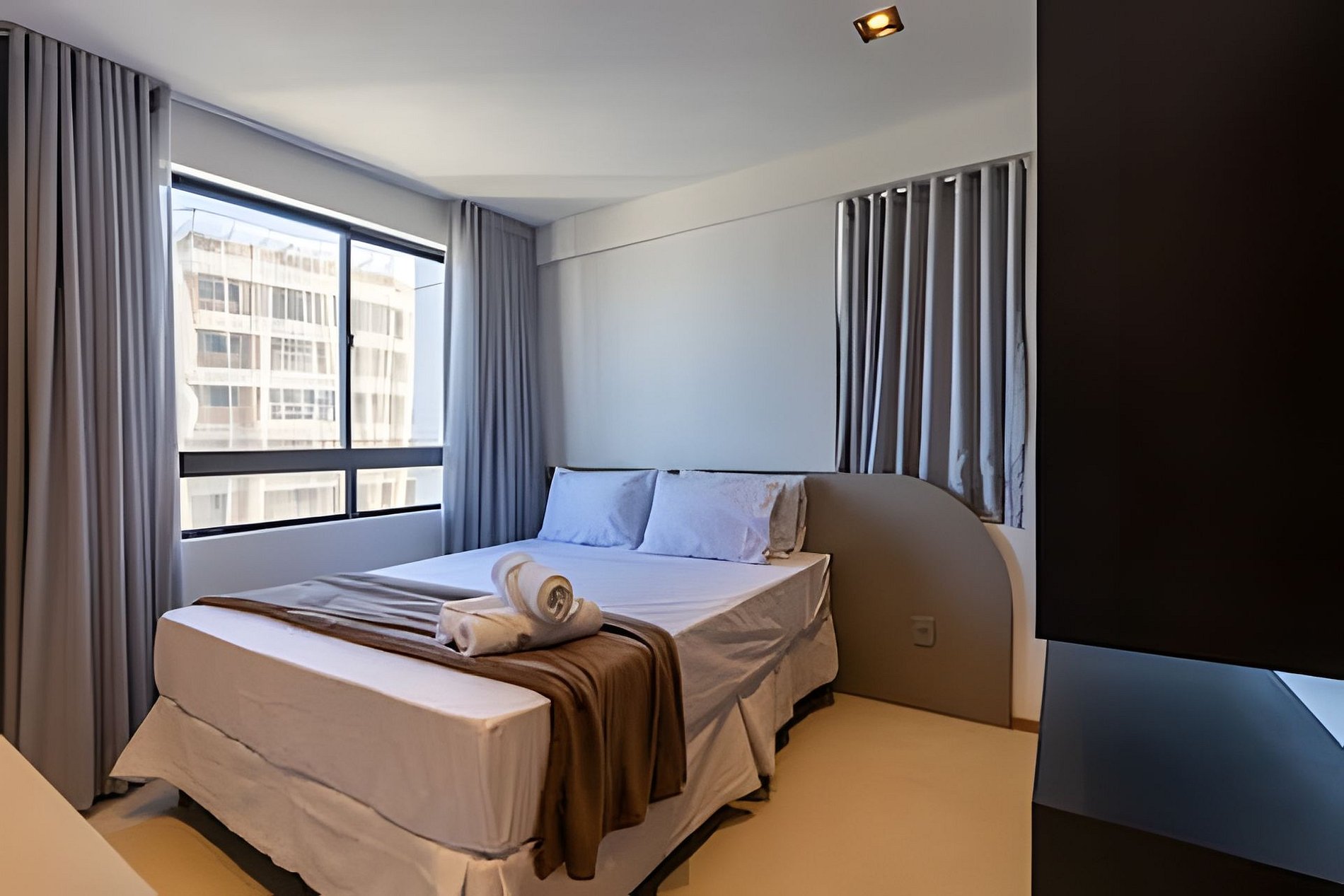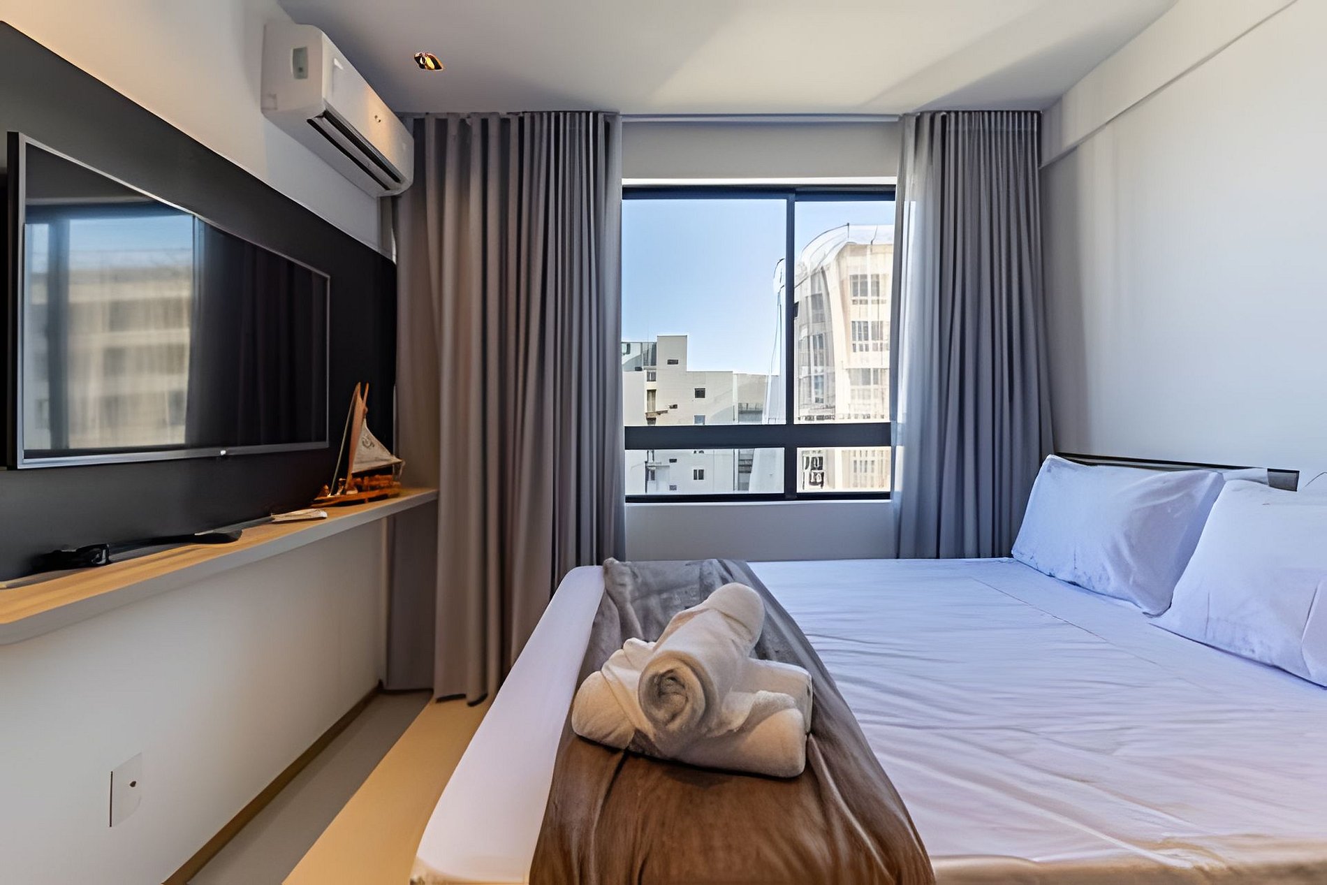 Just 15 minutes walk to the waterfront! Our apartment is a bedroom and living room with air conditioning, as well as a sofa bed and washing machine (very good, right?), our space is perfect for those looking for a well-located stay with everything they need! Balcony with beautiful sea views, central location close to markets, restaurants and beaches.