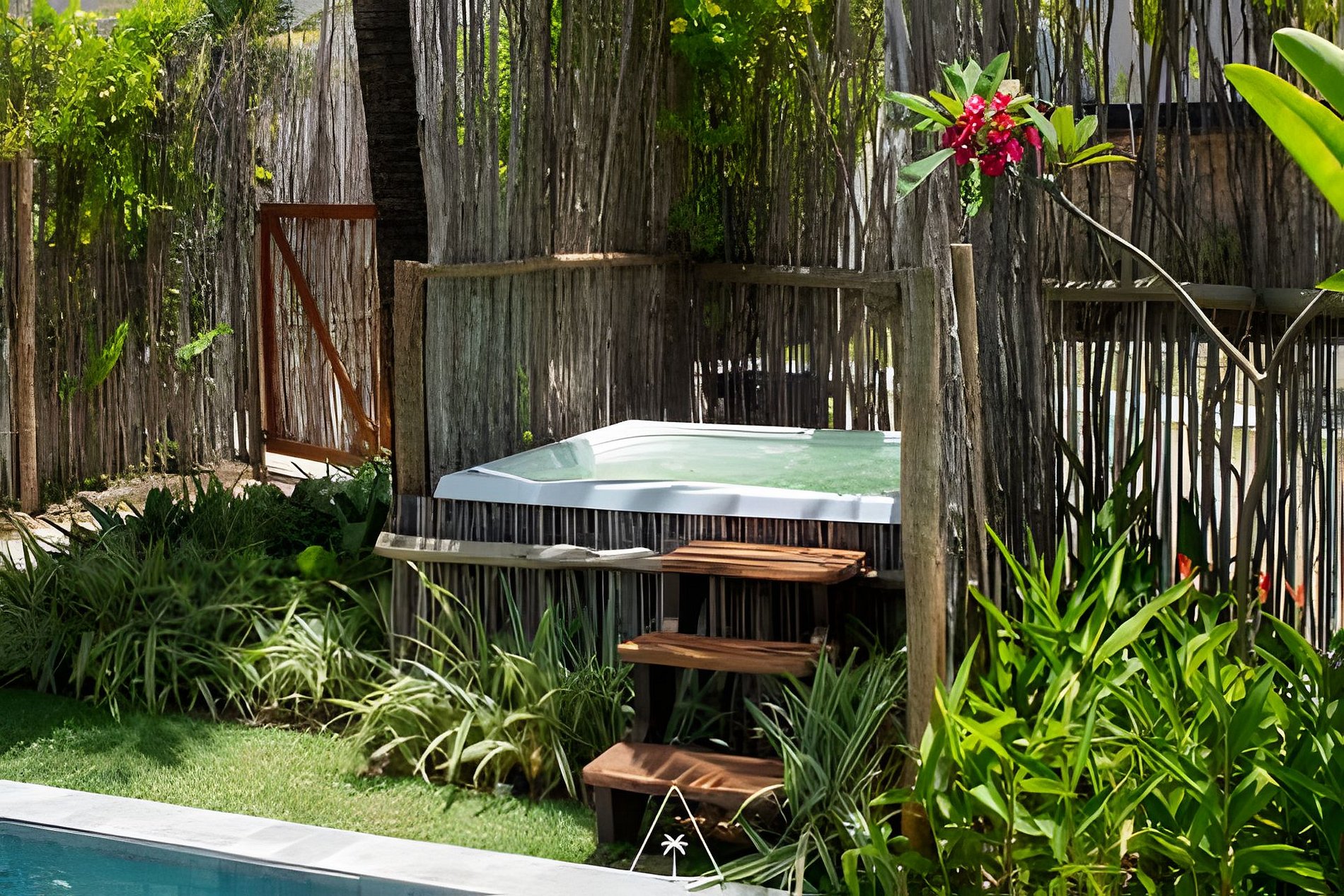 Private jacuzzi that accommodates up to 6 adults.