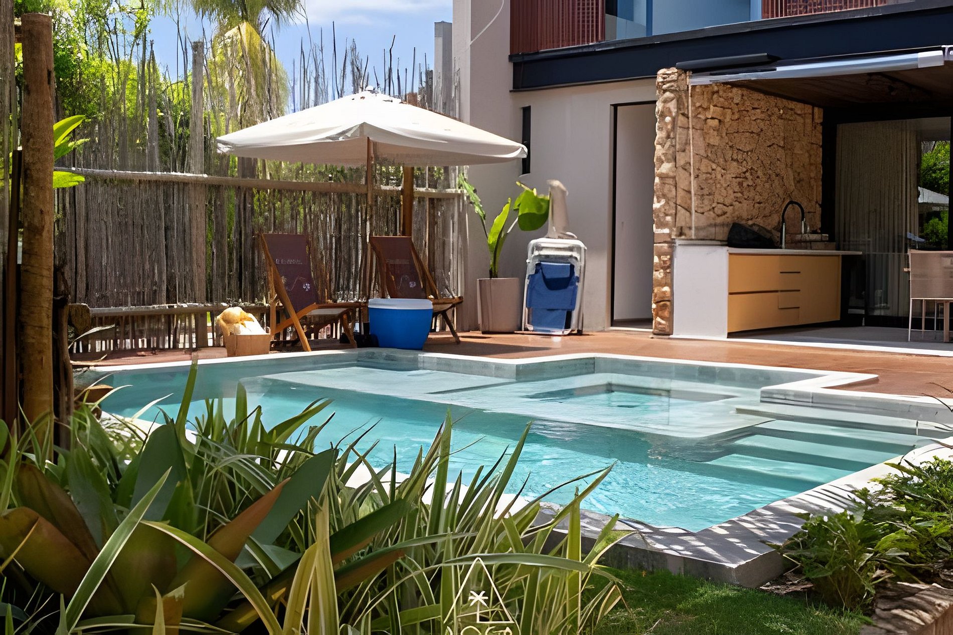 Private pool with deck, sun loungers, and a complete beach kit.