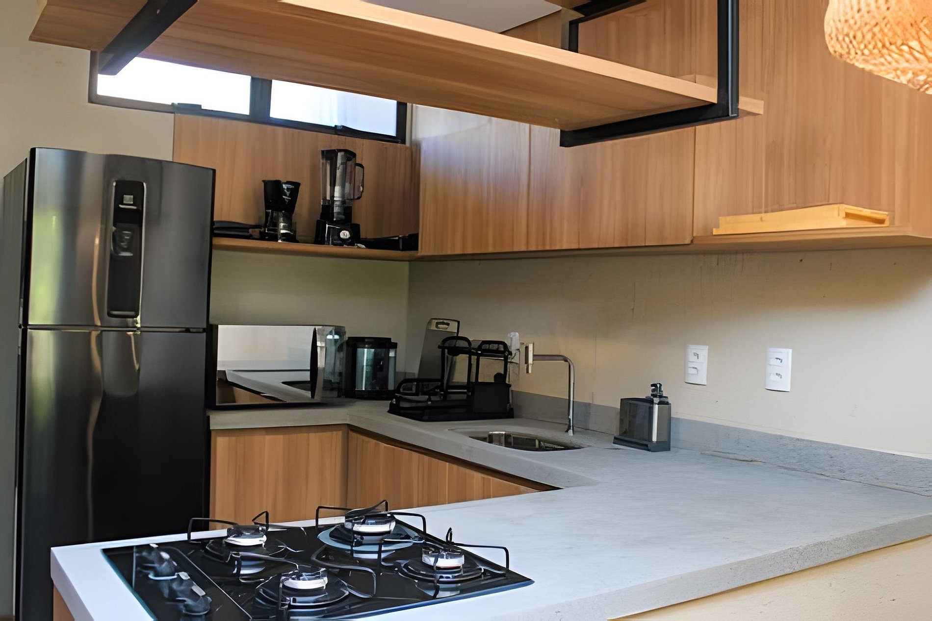 Fully equipped kitchen and gourmet area with barbecue grill