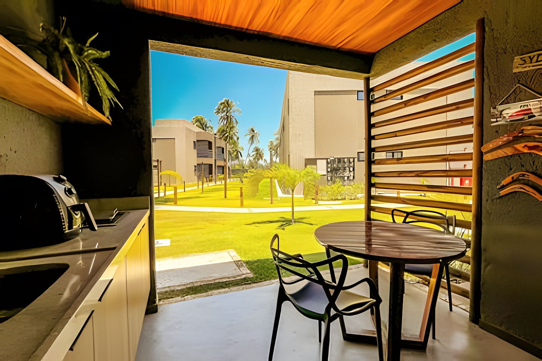- Private balcony with barbecue grill.