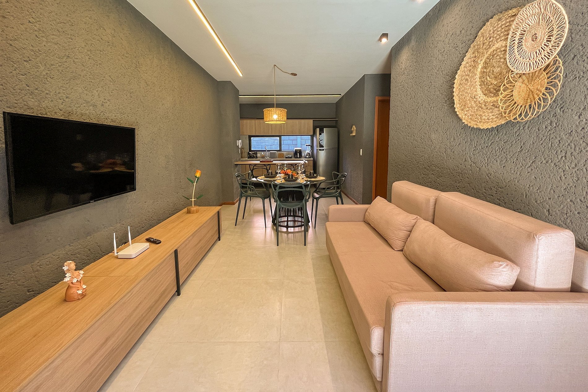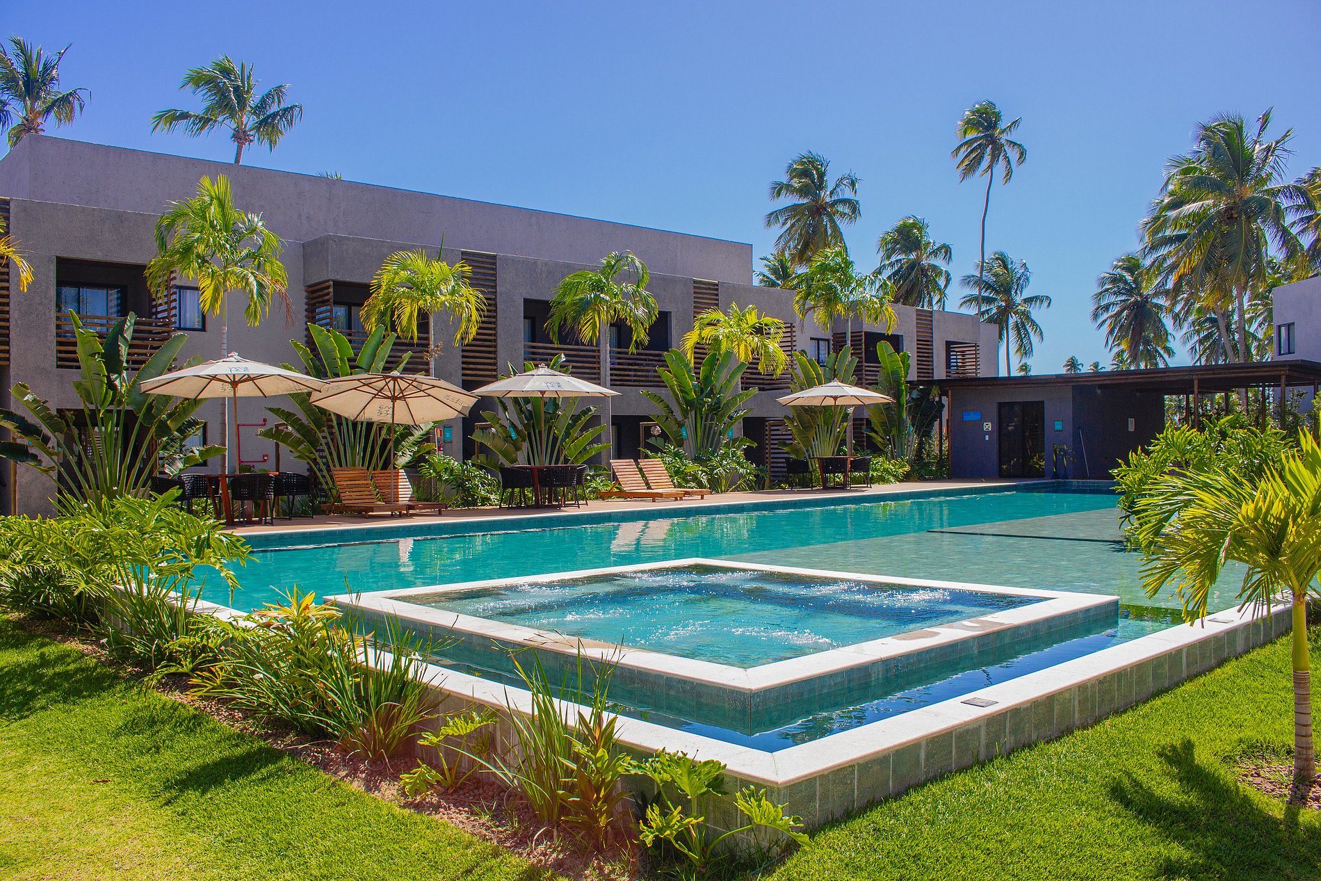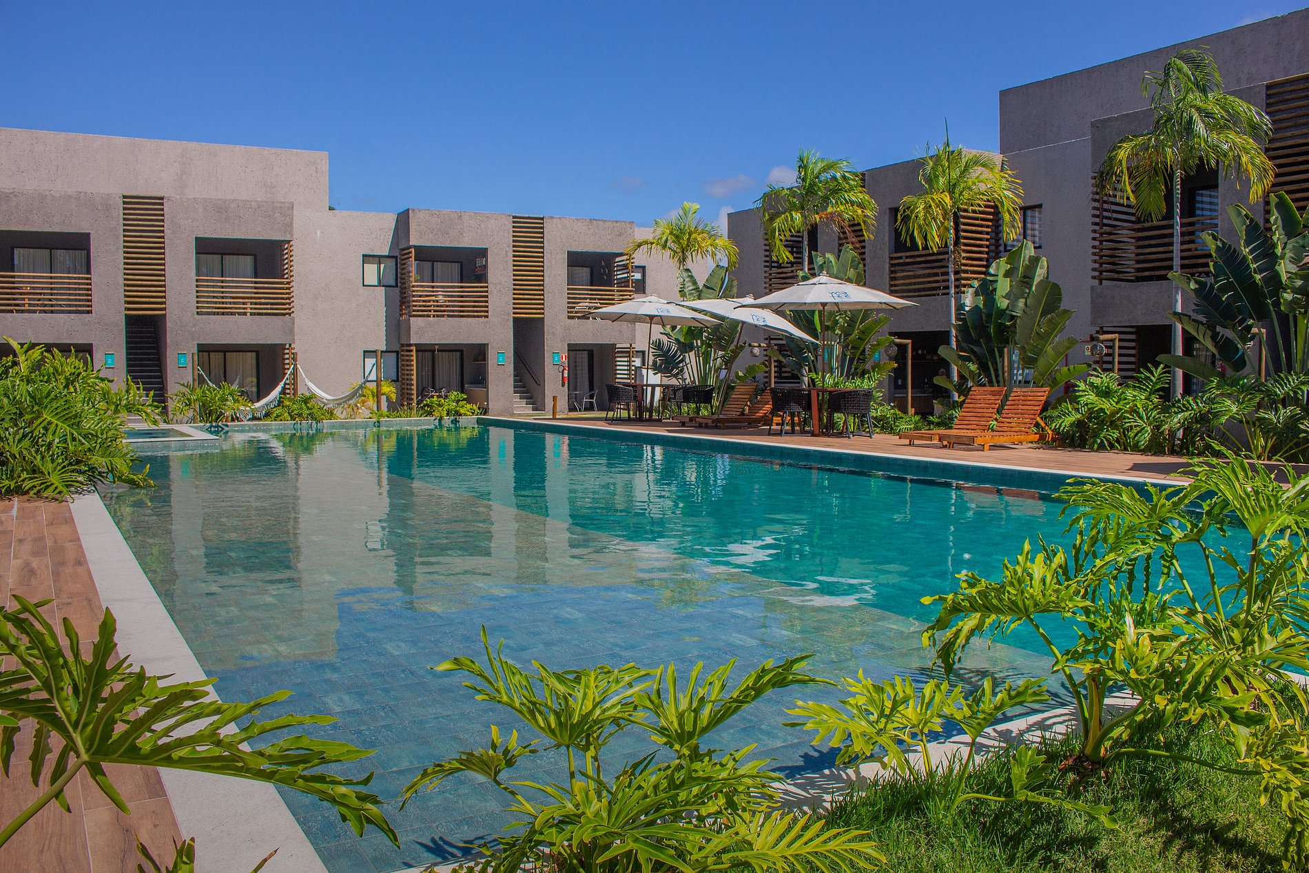 # Resort Amenities: - **Pool**: Relax and refresh in the 900m² pool, which includes a small beach for children. - **Hydromassage**: Enjoy relaxing moments in the hydromassage. - **Ufurô/Jacuzzi**: Unwind in the comfort of the ufurô/jacuzzi. - **Steam Sauna**: Revitalize yourself in the steam sauna. - **Hammocks**: Take advantage of the hammocks for rest. - **Children's Playground**: Guaranteed fun for the kids in the playground. - **Fully Equipped Gym**: Stay active in the well-equipped gym. - **Private Parking**: Security and convenience with private parking. - **Electric Vehicle Parking**: Easy access for electric vehicles. ## House Features: - **Private Balcony with Barbecue**: Enjoy an outdoor meal on the balcony with a private barbecue. - **Smart TV in Living Room and Bedrooms**: Guaranteed entertainment with the Smart TV. - **Air Conditioning**: Comfort in both bedrooms with air conditioning. - **Fully Equipped Kitchen**: Prepare your meals in the complete kitchen. - **Equipped Bathrooms**: Bathrooms stocked with soap and hairdryer. - **Comfortable Bedrooms**: Bedrooms with irresistibly comfortable beds and complete bedding included. Discover our charming retreat, carefully decorated to offer exceptional accommodations on one of the most stunning beaches in the Northeast!