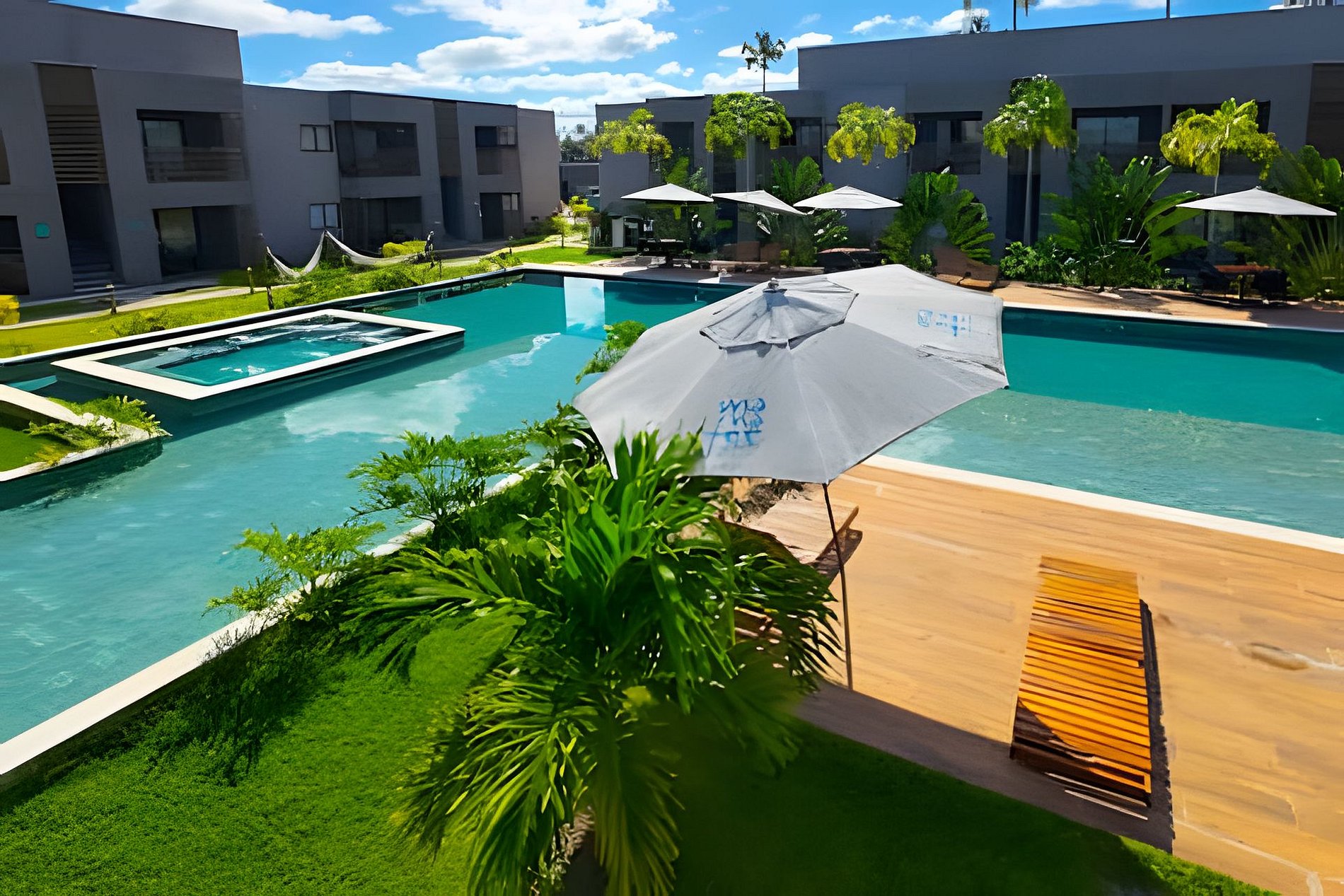 - Piscina de 900m² com área infantil estilo “prainha”