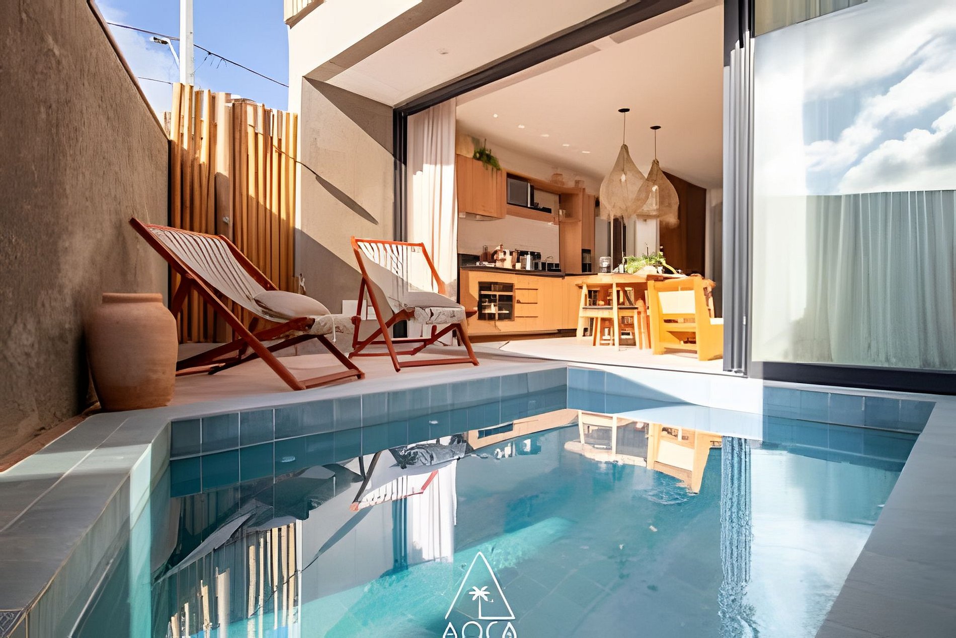 Acesso as piscinas privativas da casa e a área comum do condomínio.