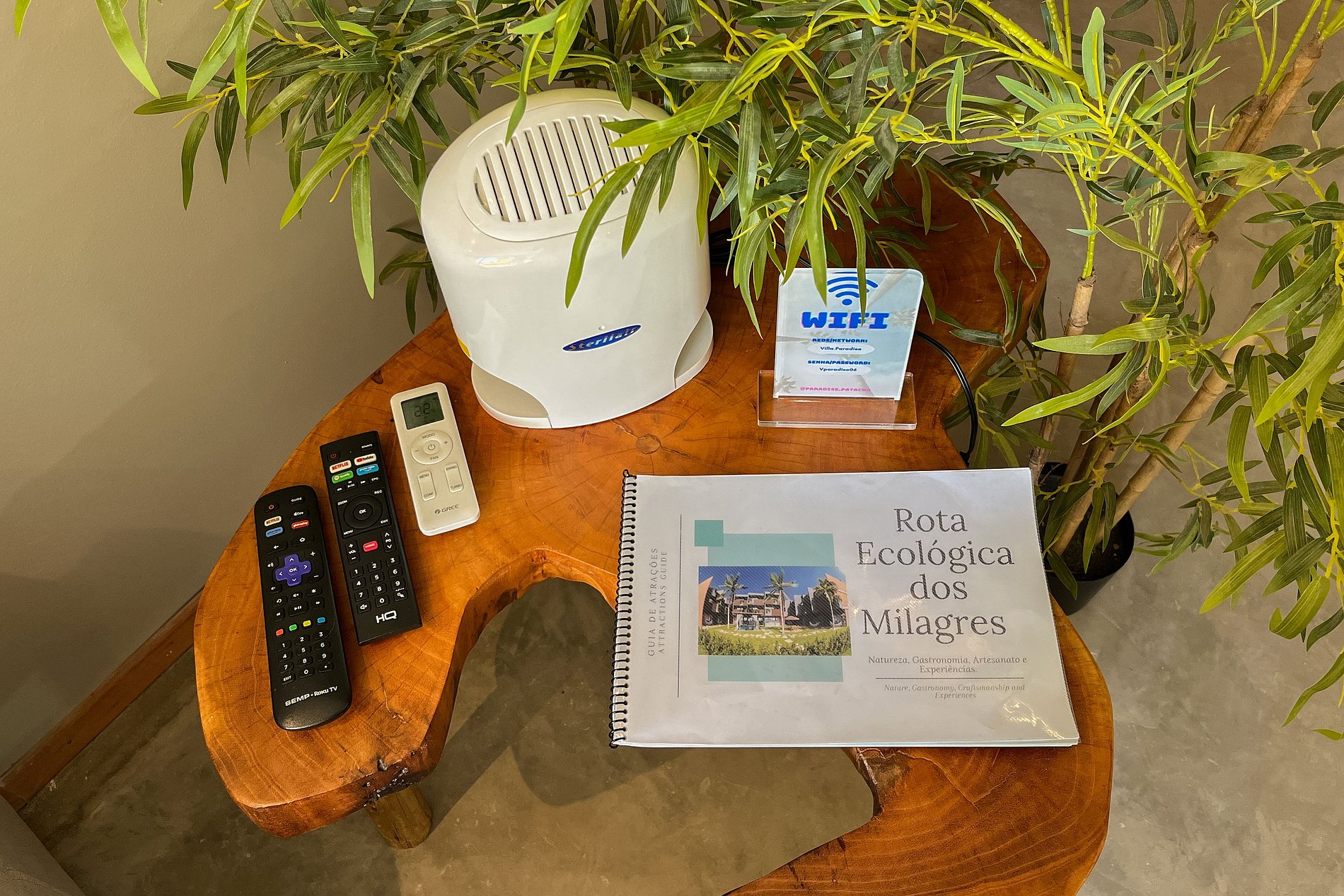 - TVs e ar condicionado em todos os quartos e na sala.
